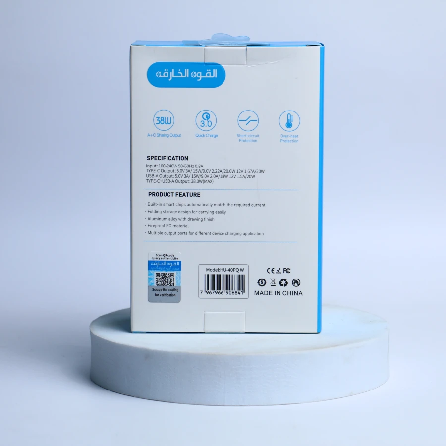 مخرج TYPE-C+USB-A: ٣٨.٠ واط (كحد أقصى)