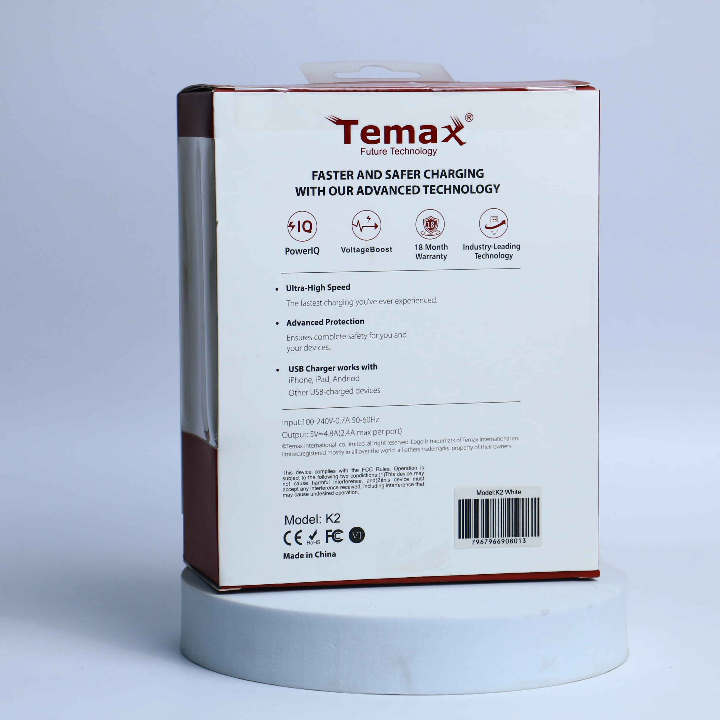 • الخرج: 5 فولت - 4.8 أمبير (2.4 أمبير كحد أقصى لكل منفذ)
