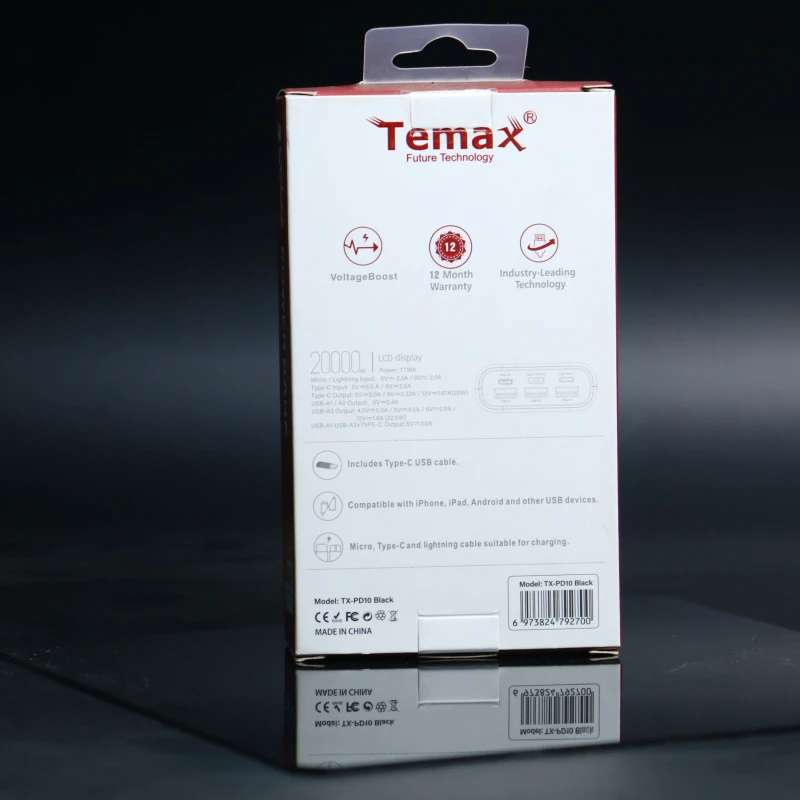 مخرج تايب-سي: ٥ فولت ٣.٠ أمبير / ٩ فولت = ٢.٢٢ أمبير / ١٢ فولت ١.٦٧ أمبير (٢٠ واط)