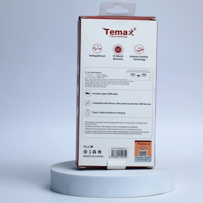 1. هذا المنتج عبارة عن بنك طاقة محمول فائق السرعة، والغرض الرئيسي منه هو شحن الهواتف المحمولة أو الأجهزة الأخرى.