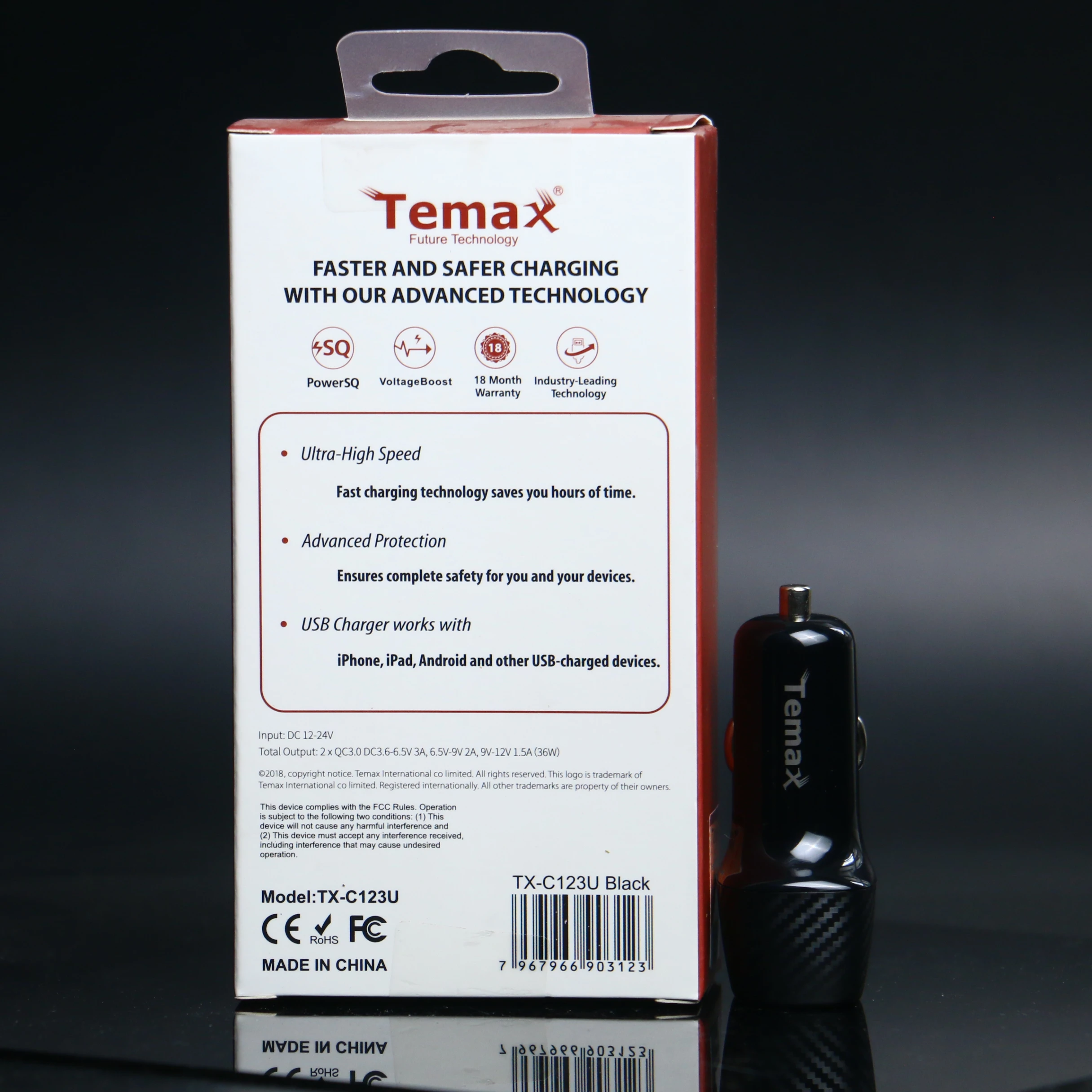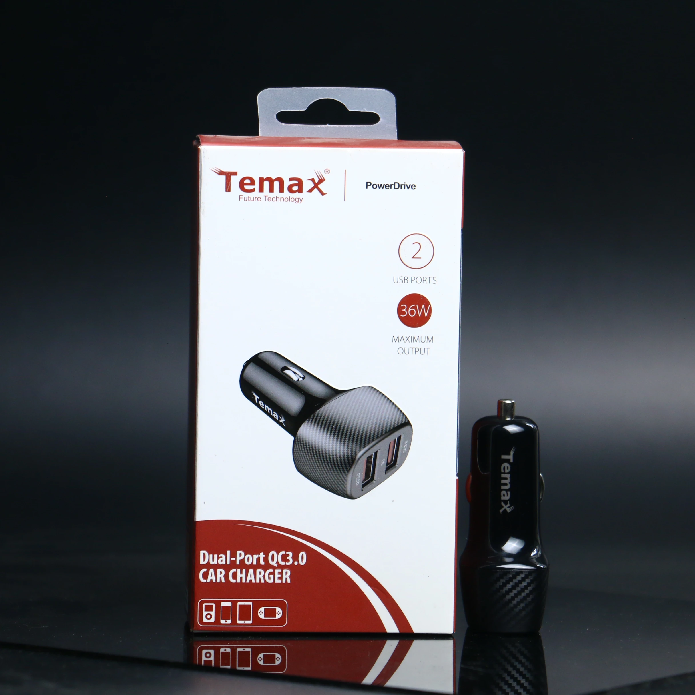 إجمالي الناتج: 2x QC3.0 DC3.6-6.5V 3A ، 6.5V-9V 2A ، 9V-12V 1.5A (36W)