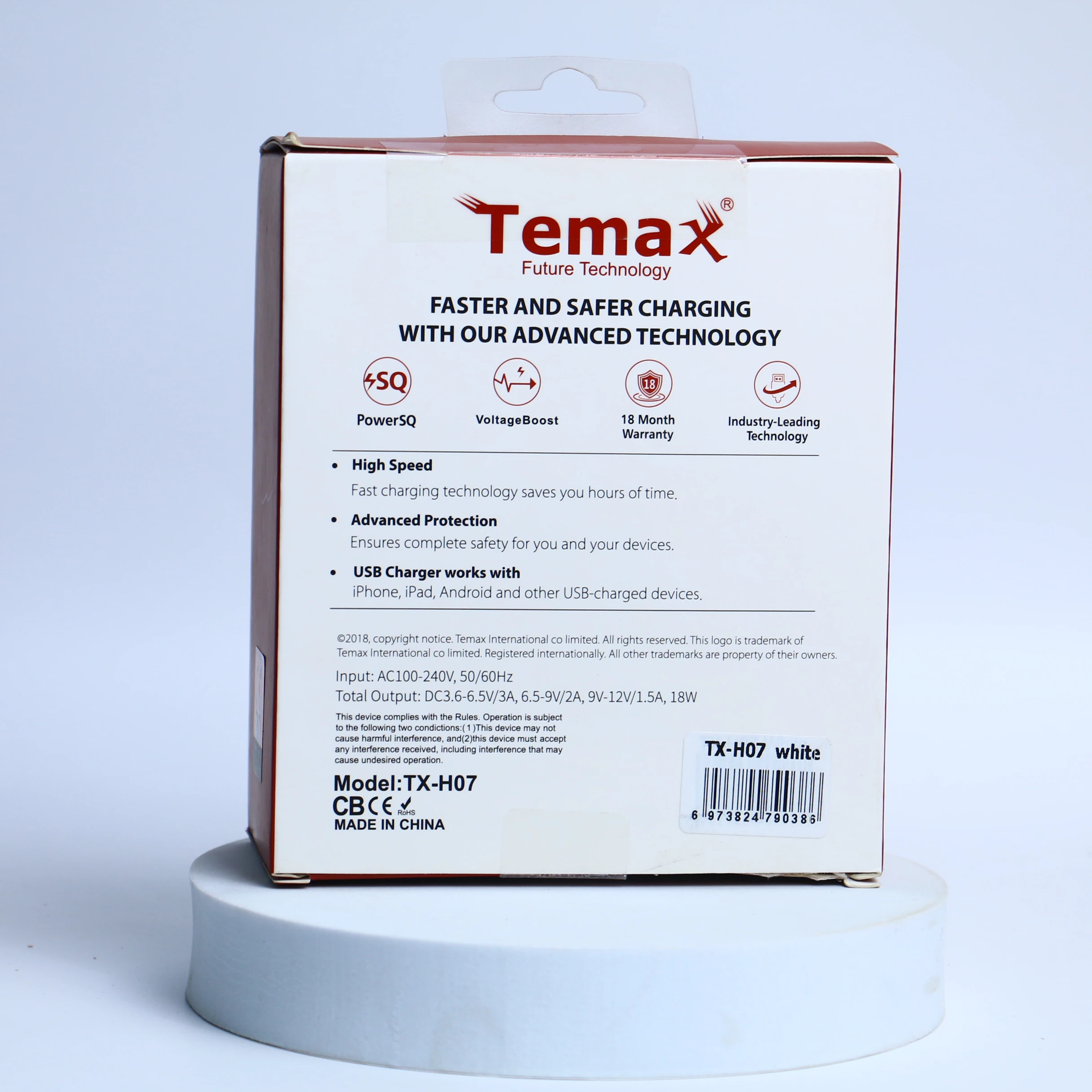 إجمالي الخرج: تيار مستمر ٣.٦-٦.٥ فولت/٣ أمبير، ٦.٥-٩ فولت/٢ أمبير، ٩ فولت-١٢ فولت/١.٥ أمبير، ١٨ واط