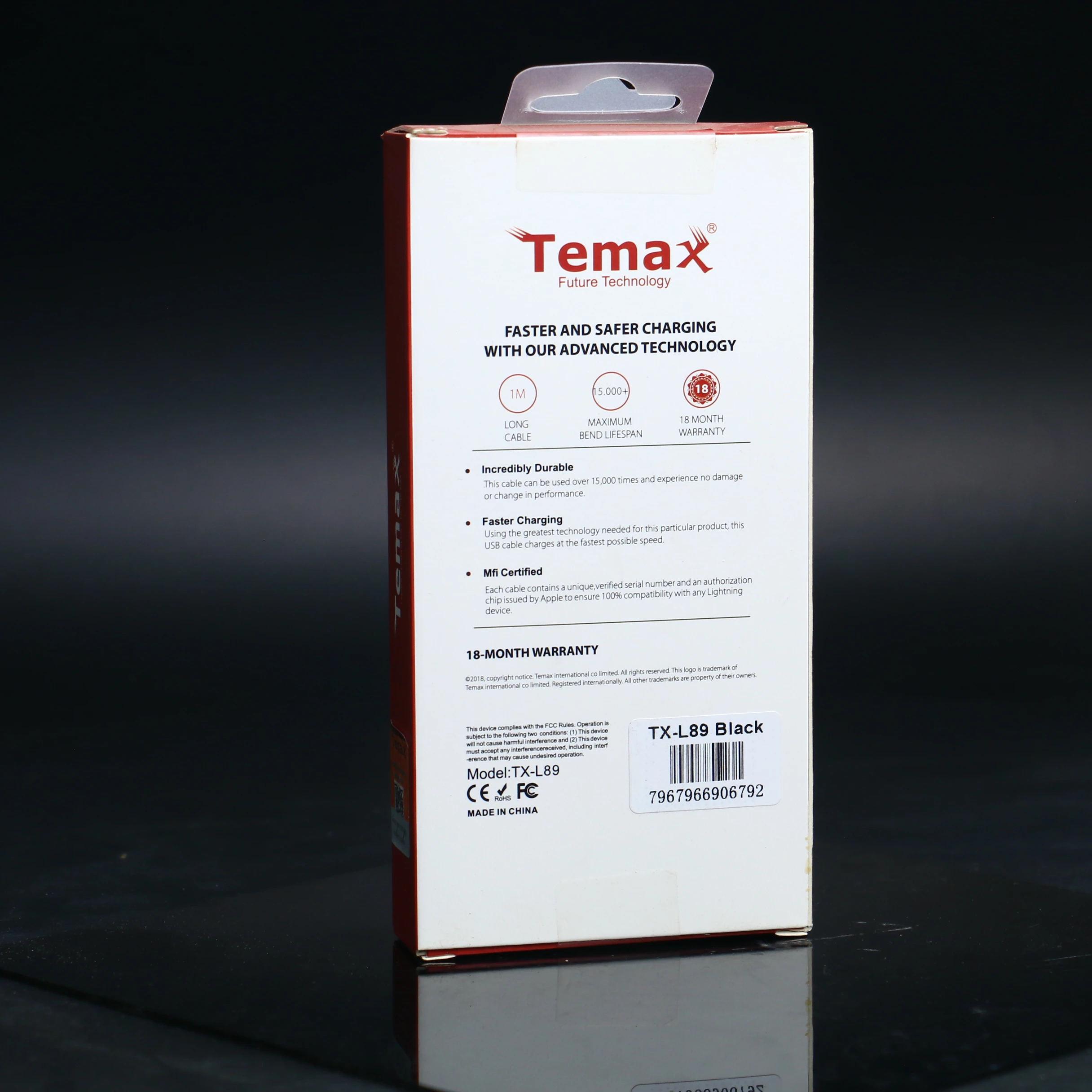 يحتوي كل كابل على رقم تسلسلي فريد وموثق وشريحة تفويض صادرة عن Apple لضمان توافقه التام مع أي جهاز Lightning.