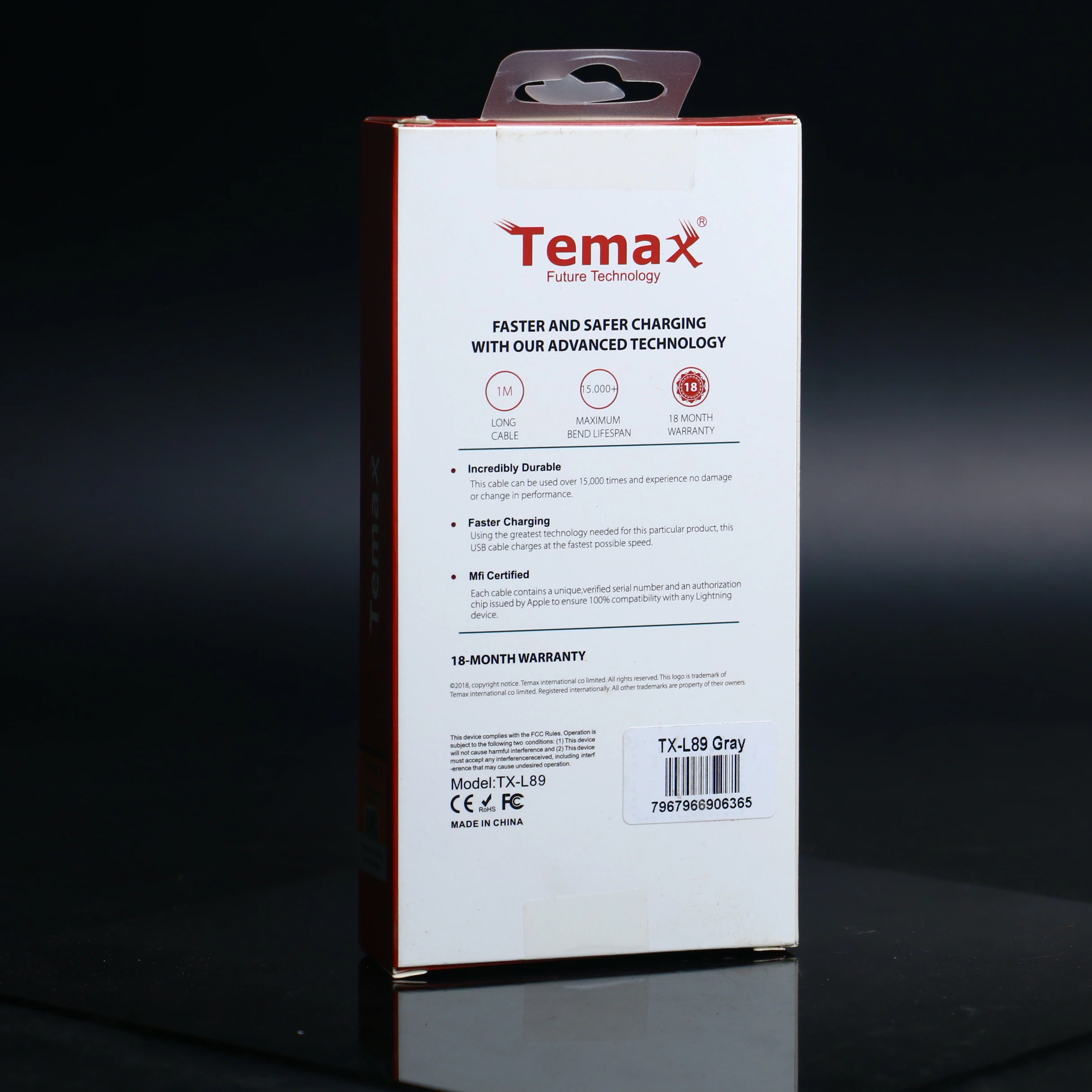 يحتوي كل كابل على رقم تسلسلي فريد وموثق وشريحة تفويض صادرة عن Apple لضمان توافقه التام مع أي جهاز Lightning.